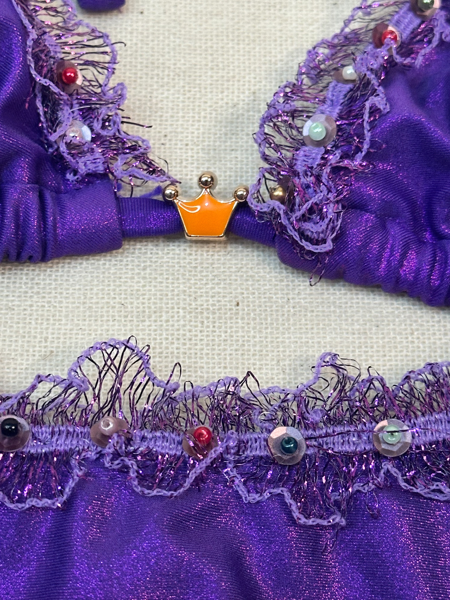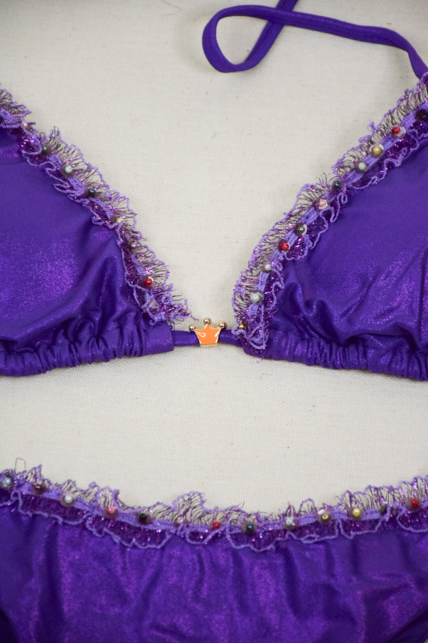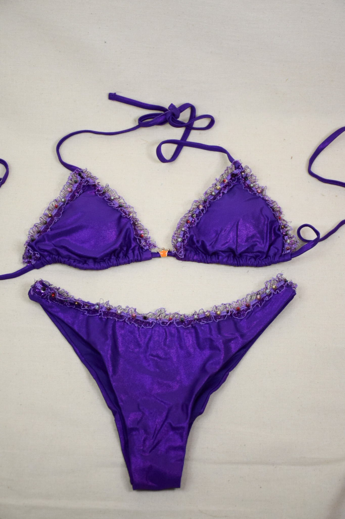 Bikini, forrado, lycra,tornasol,morado,adaptable,triangulo, decorado a mano, unico, talla S