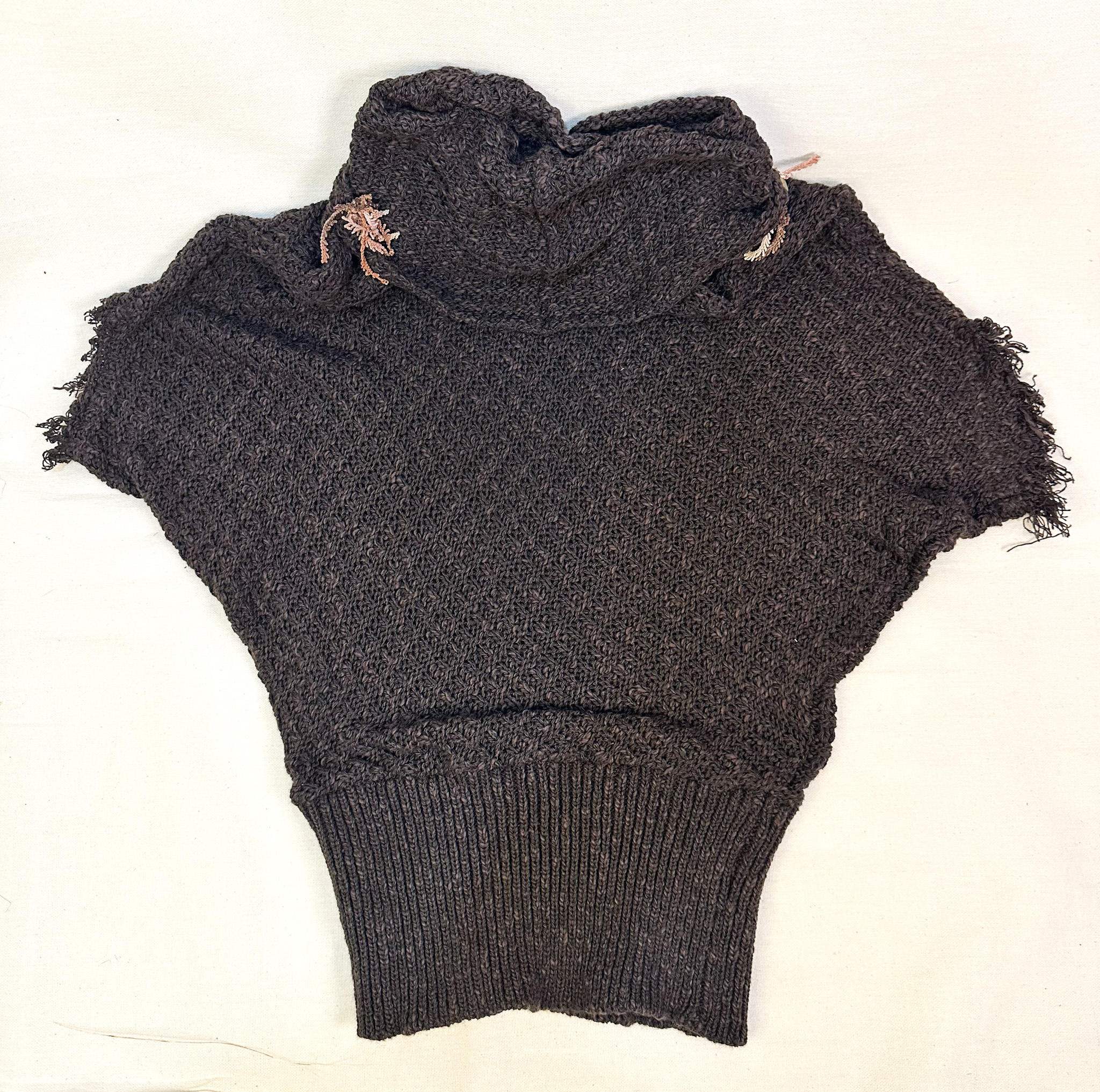 Sweater, tortuga, cafemoro, lana, aplicacion, flor,flecos,decorado a mano, unico,mide 80 cms alto, pretina.