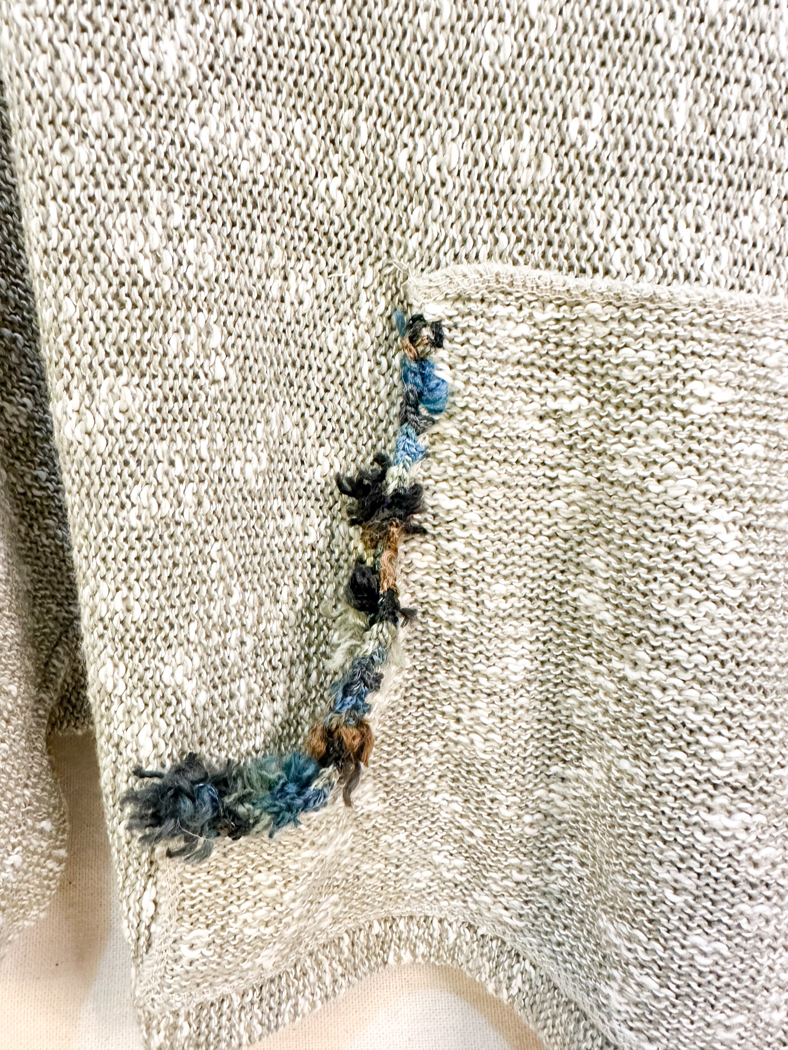 Sweater, gris, melange, canguro,capuchon,lana,decorado a mano, mide 52 cms largo, talla unica,sin pretina