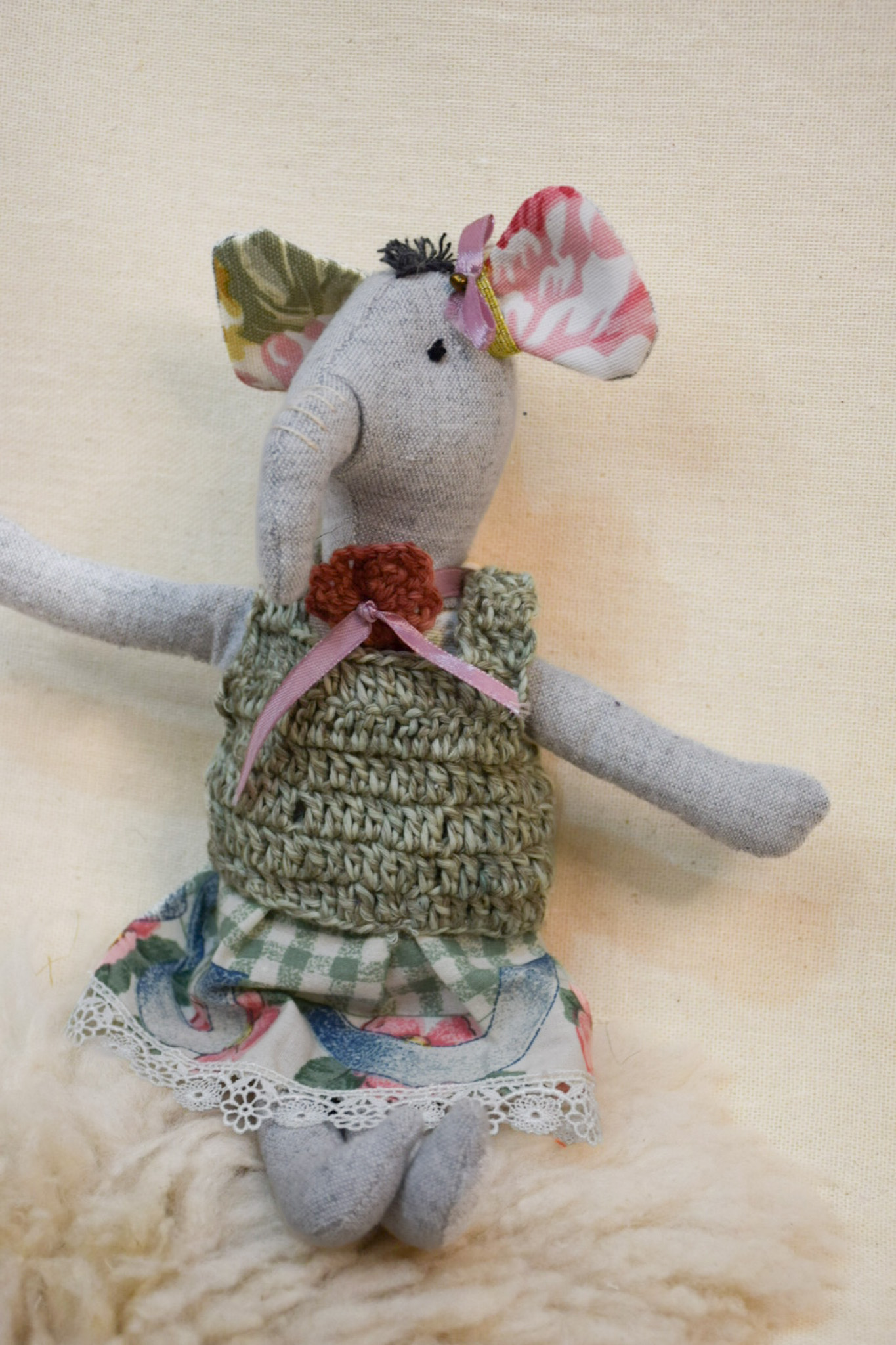 Titona,elefanta,de apego, tela,historia,valores,tolerancia, mide 32 cms.