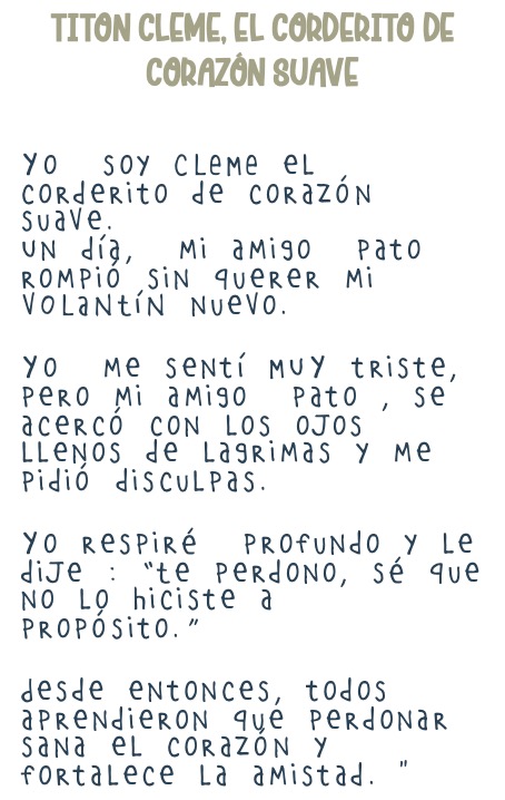 Titon , corderito, de apego, tela,historia,valores, perdón,mide 32 cms.