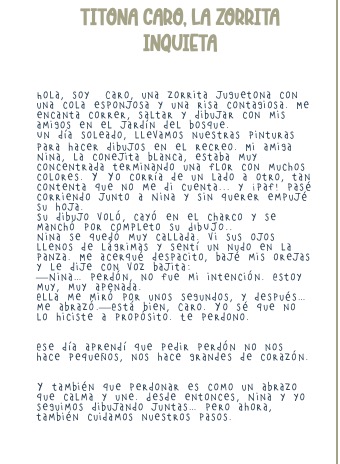 Titona,zorrita,de apego, tela, historia,valores, perdón,mide 32 cms.