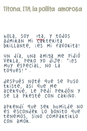 Titona, tela,pollita,apego, infantil,historia,valores,humildad, mide 32 cms.