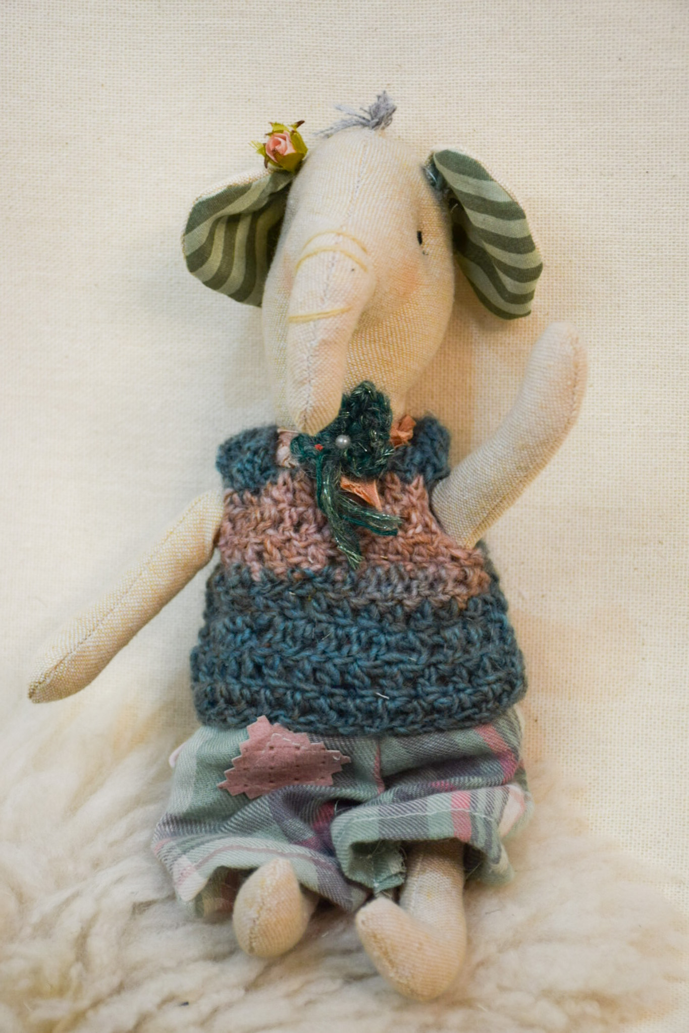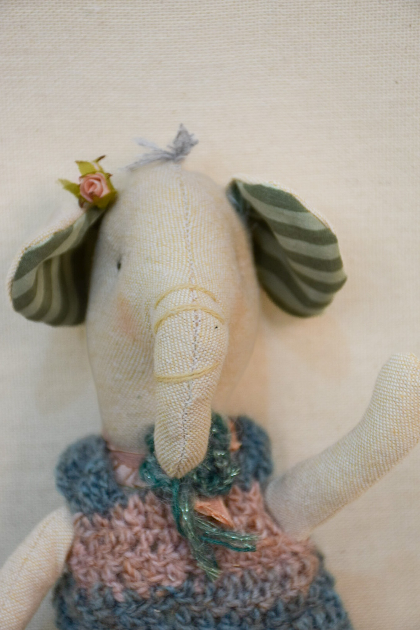 Titona , elefanta,de apego, tela,historia, valores,timidez, mide 32 cms.