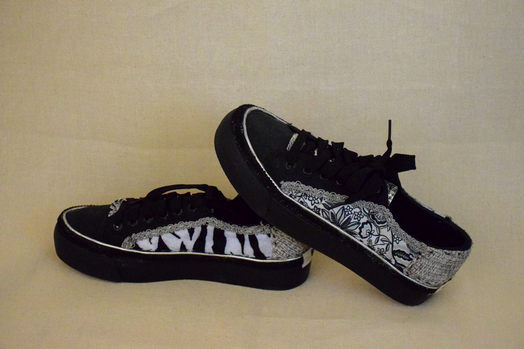 Zapatilla lona, impermeabilizada,aplicacion tela , zebra.Mide 25 cms.